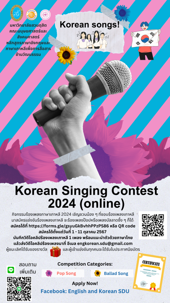 ข่าวกิจกรรมนักศึกษา | ข่าวประชาสัมพันธ์ | มุมกิจกรรม Korean Singing Contest 2024 (Online) ByDatacenter ARIT September 30, 2024August 13, 2025