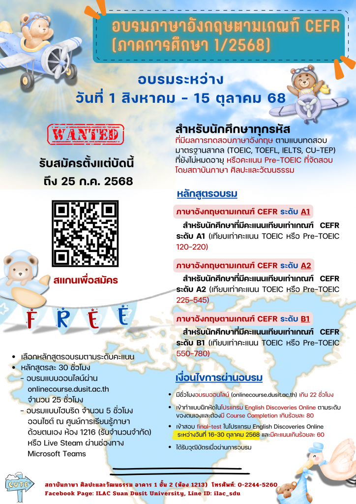 ข่าวประชาสัมพันธ์ | มุมกิจกรรม สถาบันภาษา ศิลปะและวัฒนธรรม ได้จัดกิจกรรมส่งเสริมพัฒนาทักษะภาษาอังกฤษตามระดับ CEFR สำหรับนักศึกษา (ภาคการศึกษาที่ 1/2568) ByDatacenter ARIT July 2, 2025August 13, 2025
